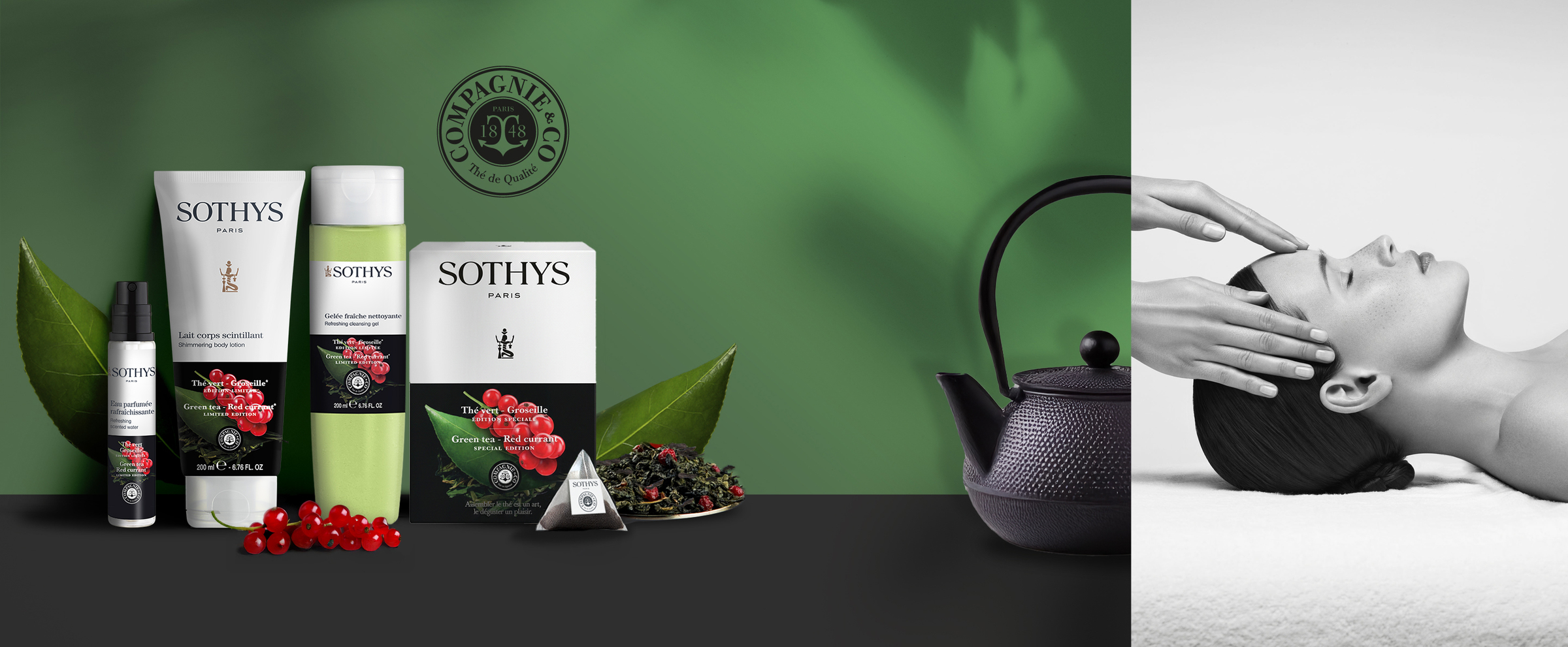 Pour le Printemps-Été 2026, nous réitérons notre collaboration exclusive avec la Maison Compagnie & Co pour imaginer un Soin saisonnier inédit aux notes fraîches et acidulées de Thé vert & Groseille.